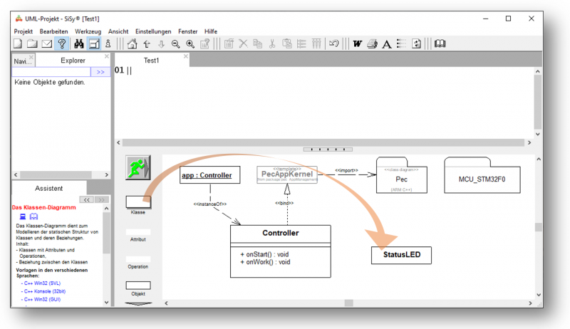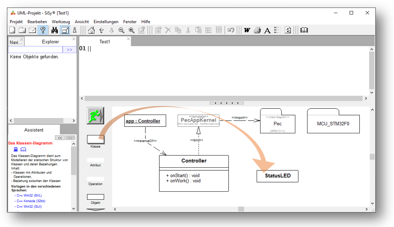 Zuerst ziehen Sie eine Klasse aus der Objektbibliothek in das Diagramm und geben dieser den Namen StatusLED.