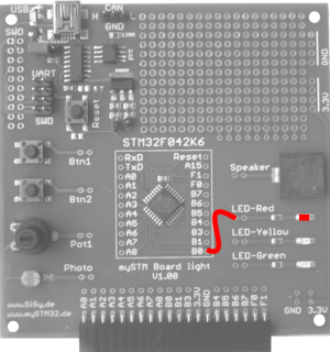 - verbinden Sie Pin B0 mit der roten LED