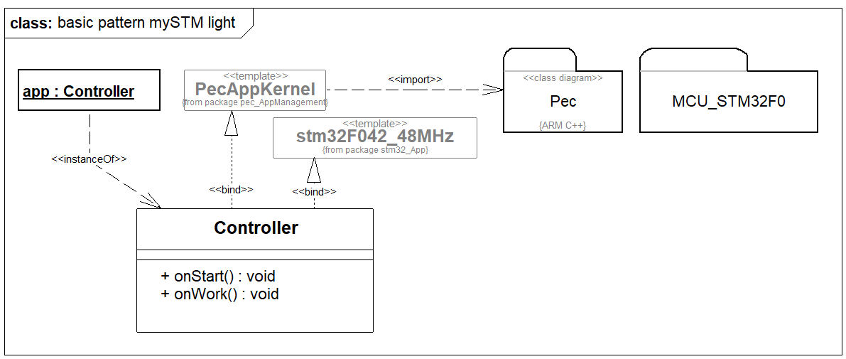 - Diagrammvorlage für PEC Applikation auswählen, laden und Treiberpaket für STM32F0 einfügen