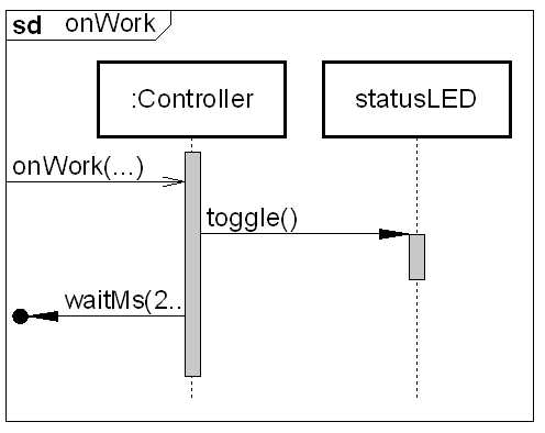 Controller::onWork():void// continuous event from the Mainloop statusLED.toggle(); waitMs(200);