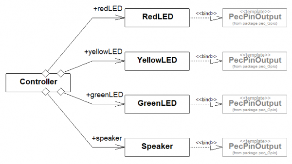 • Klassen RedLED, YellowLED, GreenLED anlegen und mit Controller verbinden (Aggregation)